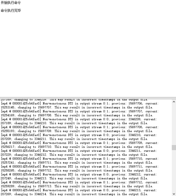接下来,就开始运行,执行命令,当提示命令执行完毕时,就得出了视频合并的结果;