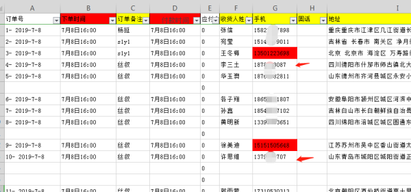 使用条件格式,当字数不是11位时,改变底色的标注,示意数据出错。
