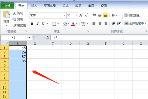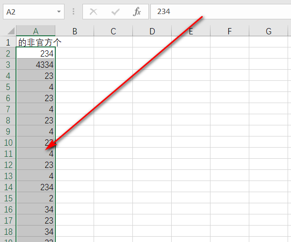 2、随后使用鼠标拖拽的方法从该格处选中所有含有数字的单元格。