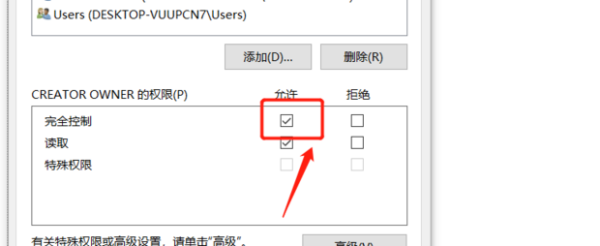 8、最后将完全控制进行勾选就完成了。