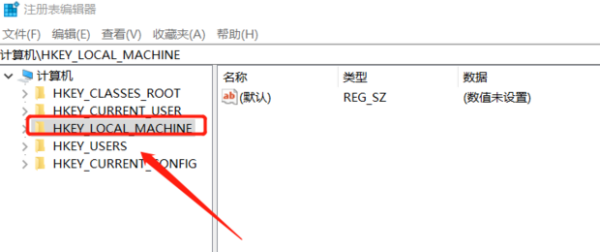 3、然后选择HKEY_LOCAL_MACHINE选项。