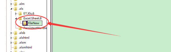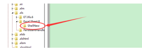 7、点击xls文件夹Excel.Sheet.8下的“ShellNew”。