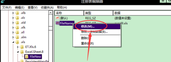 17、右键右侧栏中的“FileName”并点击“修改”。