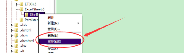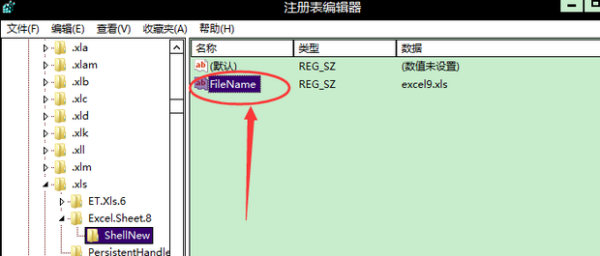 14、右键点击Excel.Sheet.8下的“ShellNew”。