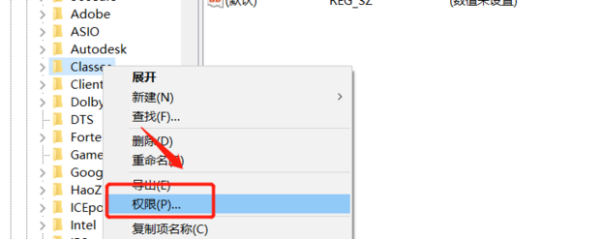 6、然后右击选择权限。
