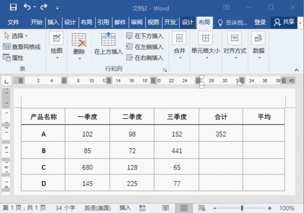 提示:Word表格中的单元格也有行号和列标。因此,在书写公式时,可以使用Excel一样的写法:=AVERAGE(b2:d2),即求表格中b2到d2单元格数据的平均值。