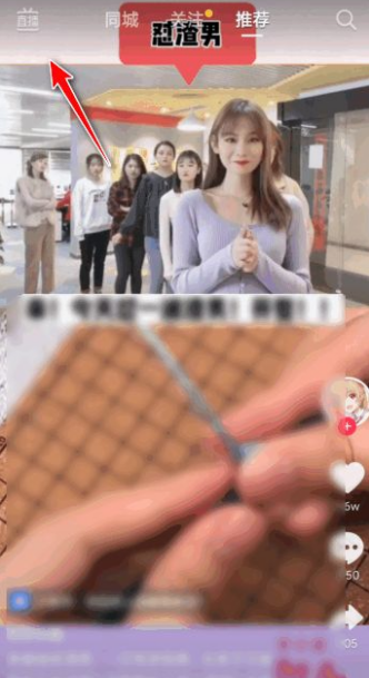 1、首先进入抖音,点击左上角的直播。如图。