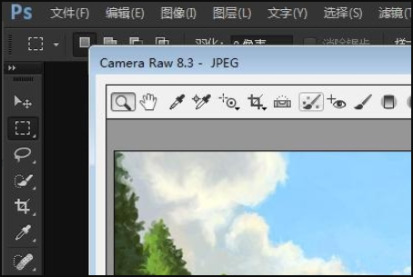 5、最后就可以看到在Photoshop中能用CameraRaw打开jpg图片了。