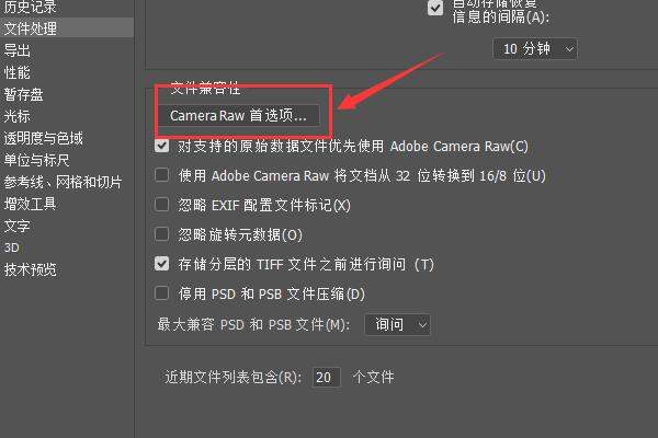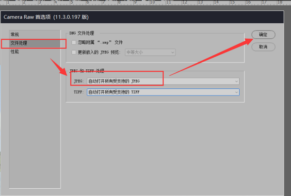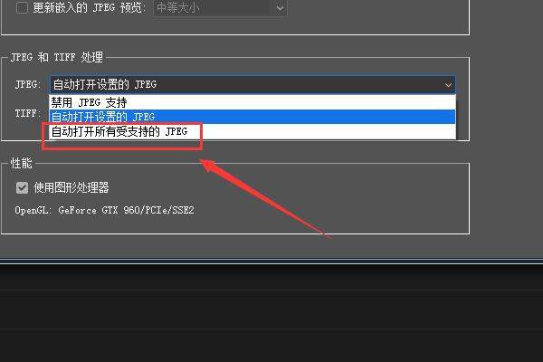 3、在CameraRaw首选项中设置JPEG格式为:自动打开所有受支持的JPEG,
