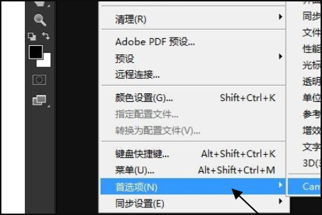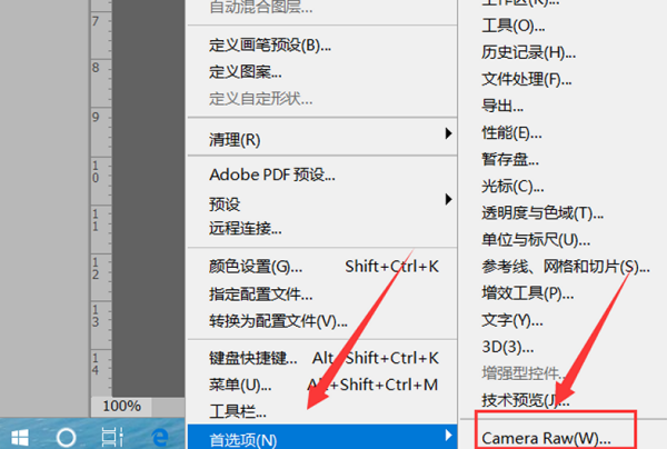 2、在Photoshop中点击编辑菜单>首选项>CameraRaw(W)...