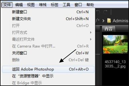 1、首先点击Bridge文件菜单>返回AdobePhotoshop。