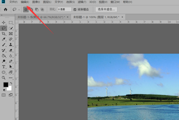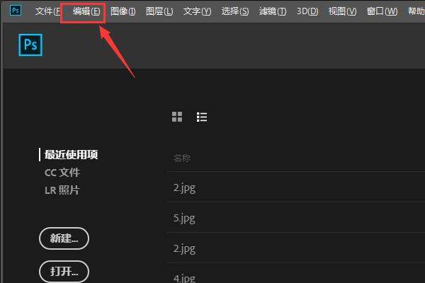 1、首先我们打开电脑里的ps软件,在ps上方菜单栏找到编辑。