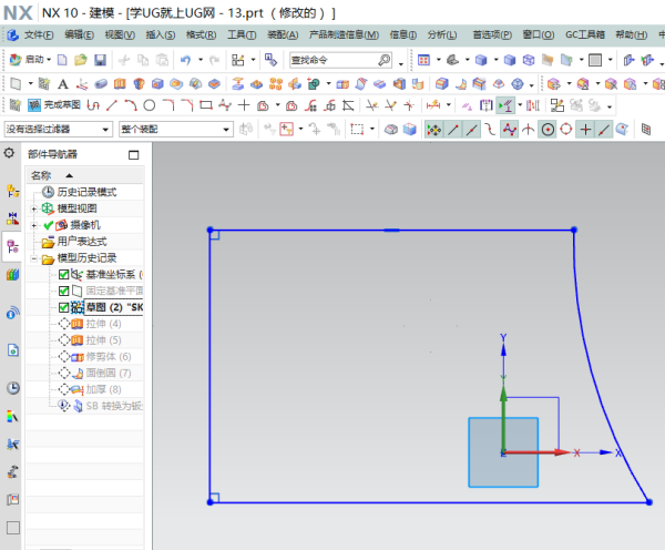 UG钣金没有对弯边进行折弯的功能,只能在建模下设计,再把其转换成钣金;在NX建模零件下,先按你图上示意图绘制出零件,然后切换到钣金模块下,通过转化成钣金命令,把刚在建模下绘制的零件转换成3D; 操作范例: 1、新建一个UG模档,然后按图上的方式创建曲线;(为便于演示,不需要按尺寸来绘制) 2、使用拉伸命令,把其转化成曲面; 3、使用面倒圆命令,增加R角,当然也可以把其转化成实体后,再增加R角,不过使用面倒圆,会方便很多; 4、选中曲面,使用加厚命令,把上一步创建的曲面变成实体,钣金零件的厚度大多是1mm. 5、从NX建模切换到UG钣金,然后使用转换为钣金命令,把上一步创建的实体转换成钣金零件;UG弯折问题
