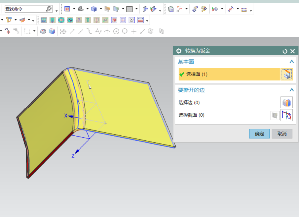 5、从NX建模切换到UG钣金,然后使用转换为钣金命令,把上一步创建的实体转换成钣金零件;