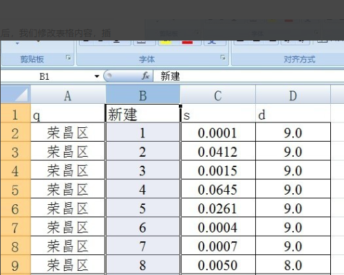 2、数据透视表插入后,我们修改表格内容,插入了一列:新建列。如下图。