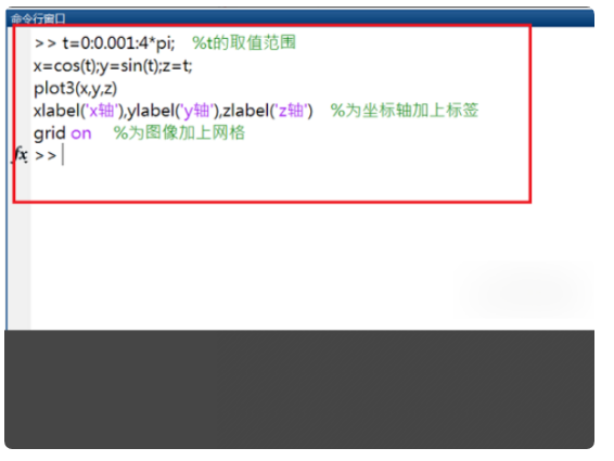 1、打开matlab,在命令行窗口中输入如下图所示,绘制三维函数图。