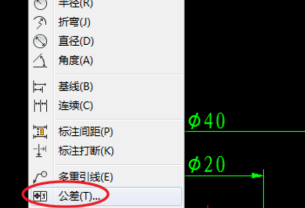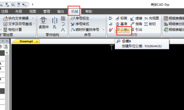 3、在标注中点击点击【公差】,进入几何公差(形位公差)标注界面。