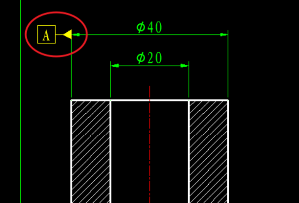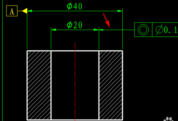 1、先画一个圆环物体,标注:以外圆为基准,要求内圆同轴度在0.1 mm以内。