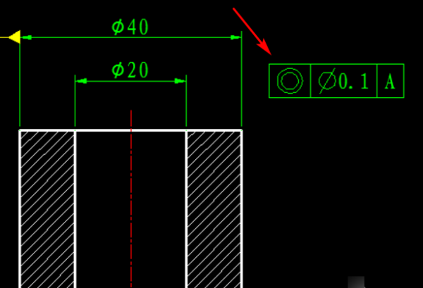 7、选择合适位置,单击鼠标左键,几何公差的框格即固定位置,显示在绘图区。