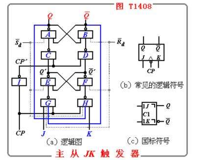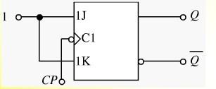 而JK触发器转换成T'触发器:把J、K端连起且保持输入高电平“1”就可以同样的时钟脉冲翻转一次的电路。
