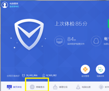 打开电脑上的安全软件,这里用的是安全管家。进入安全管家,找到“病毒查杀”。