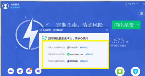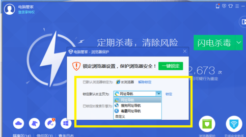 安装一个电脑管家在电脑上 然后选择一下左侧的工具箱 接着选择里面的浏览器保护,接着选择一个打算使用的主页 最后点击一下后面的锁定按钮,就可以完成绑定了如何解除2345浏览器锁定主页
