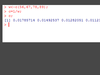 5、定义一个变量w,使用函数c()进行赋值;定义一个变量c,取w变量的倒数。