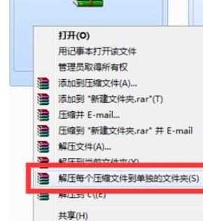 右键选择“解压每个压缩文件到到单独的文件夹”。