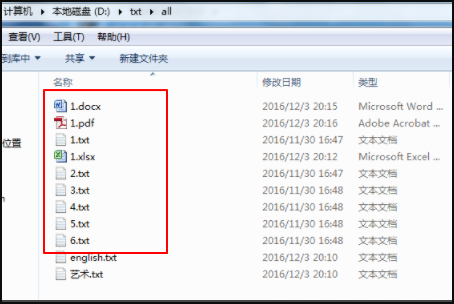 3、这样就可以看到此种方法就将需要同时拿出来的文件都选中了。