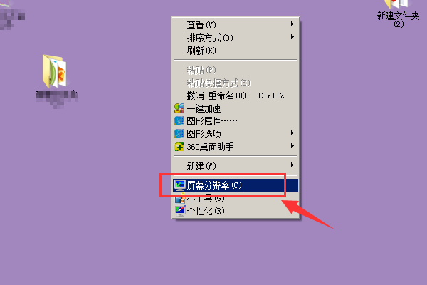 2、首先在桌面空白处右键单击,选择屏幕分辨率选项。