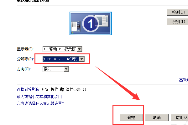 3、进入屏幕分辨率中,可以看到现在所显示的分辨率大小。