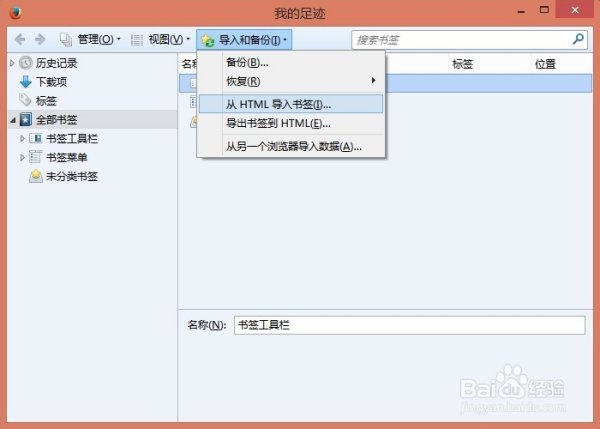 4、点击从HTML中导入书签。