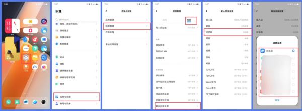 OriginOS/Funtouch OS 4.0及以上:设置--应用与权限/更多设置--权限管理--权限--默认应用设置--浏览器中选择其他程序即可;