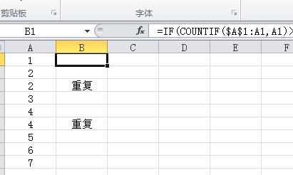 如图,B1输入公式=IF(COUNTIF($A$1:A1,A1)>1,"重复","")