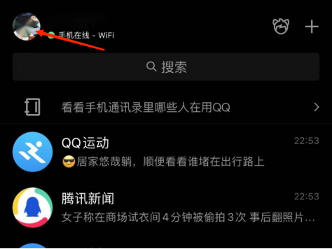 1. 首先进入QQ APP的主页面,然后点击页面左上角的个人头像。