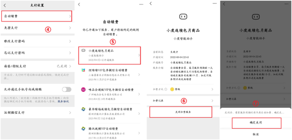 你可以打开微信,点击右下角[我]->[服务]->[钱包]->[支付设置],根据您签约的项目,点击[自动续费]/[免密支付]并选择需取消的项目,进入后选择[关闭扣费服务]即可。