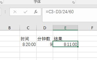 EXCEL中如何用公式计算某时间减去分钟数等于另一个时间?