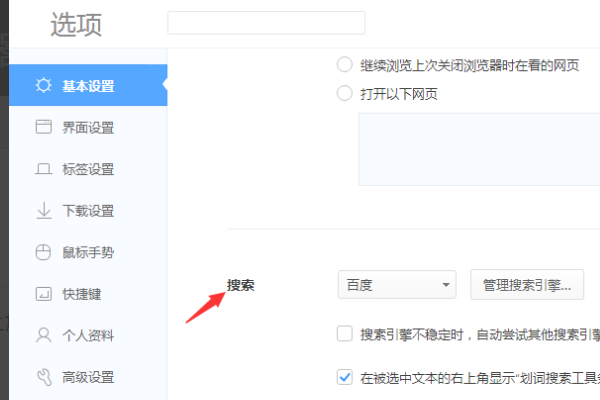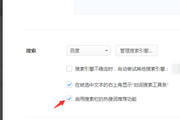 5、然后需要单击一下启用搜索栏的热搜词推荐功能菜单,去掉启用搜索栏的热搜词推荐功能的勾选。