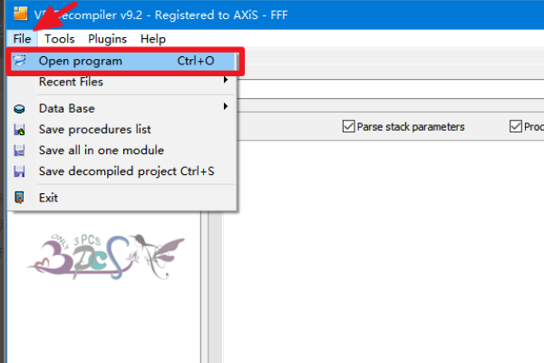 4、然后我们进入软件主界面,点击界面上方菜单栏里的File选项目录下的Open program选项打开我们想要打开的DLL文件。