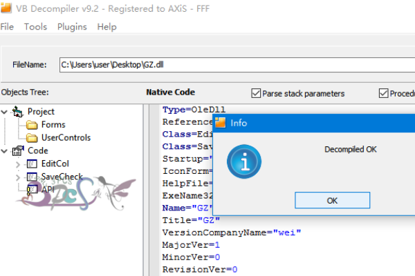 6、此时VB Decompiler程序会自动进行反编码并完成。
