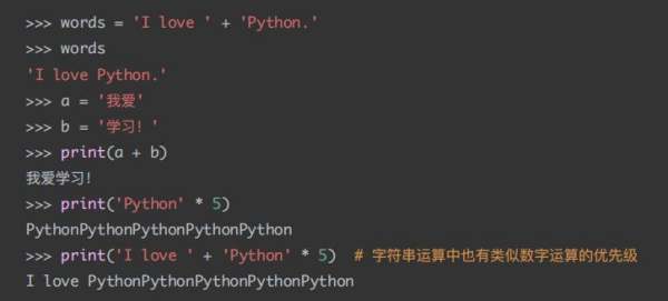 我们也可以对字符串进行一些操作。比如使用加号把字符串拼接起来: