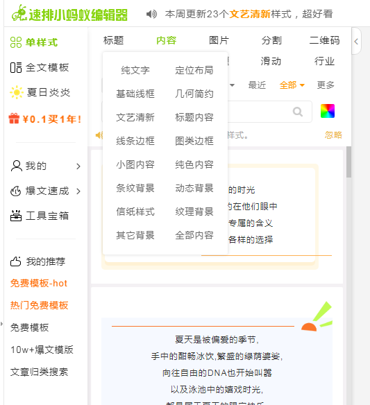 1、速排小蚂蚁编辑器,更新样式模板相当快。