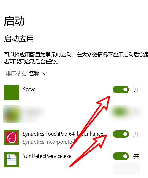 3、在启动界面,关闭开机自启动的应用开关即可。