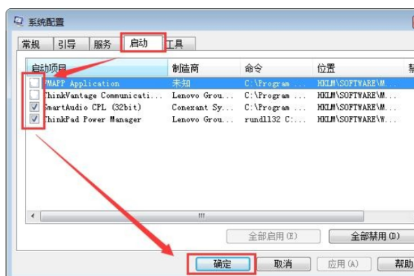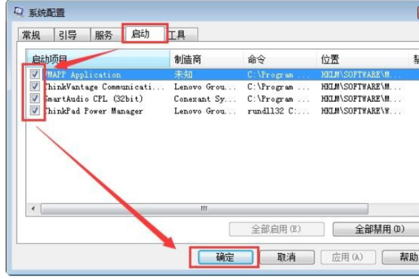 四、最后,将要取消“自启”的程序,取消勾选,即可关闭联想笔记本自启软件。问题解决。