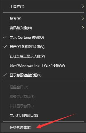 1、先在底部任务栏空白处,鼠标右键点击,然后选择任务管理器。