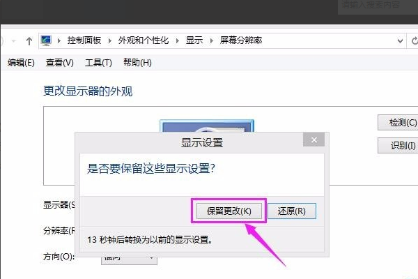 5、点击【 保留更改】,设置才会生效,这样屏幕就会恢复全屏显示了。