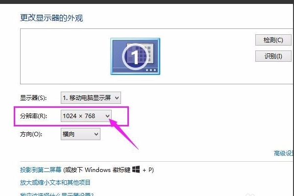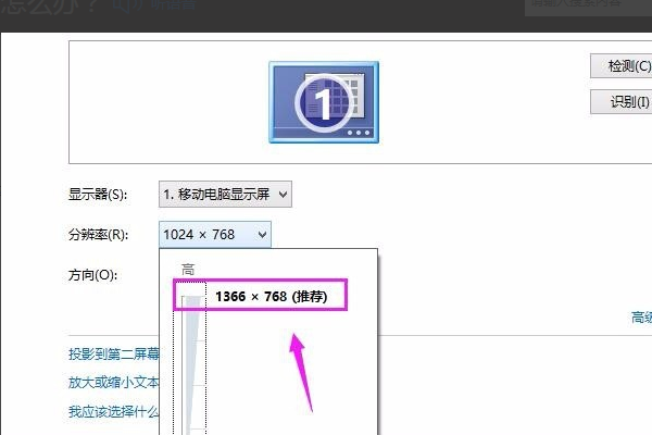 3、选择最高的分辨率,电脑就能恢复全屏显示。