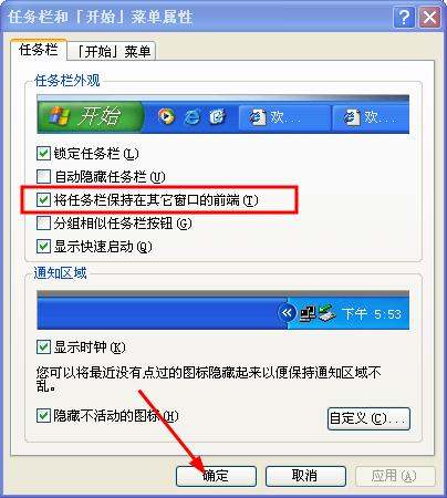 第一种方法是在任务栏上点击鼠标右键,会弹出一个菜单,再点击“属性”命令,将会弹出“任务栏和开始菜单”属性对话框。