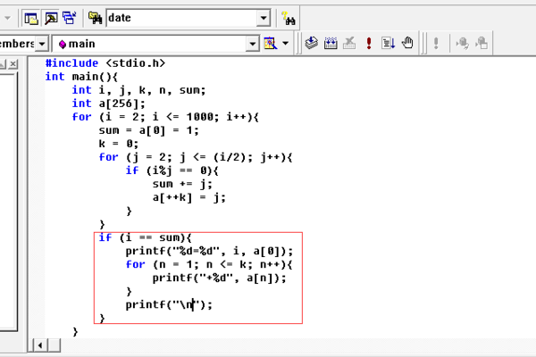 编程找出1000以内的所有完全数,并输出使该数成为完全数的因子。(c语言)