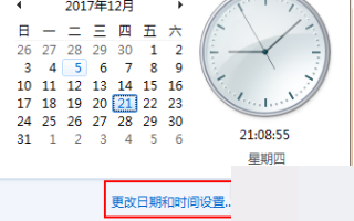 2、会跳出一个时间日期框的小框,点击中间下方的“更改日期和时间设置”。